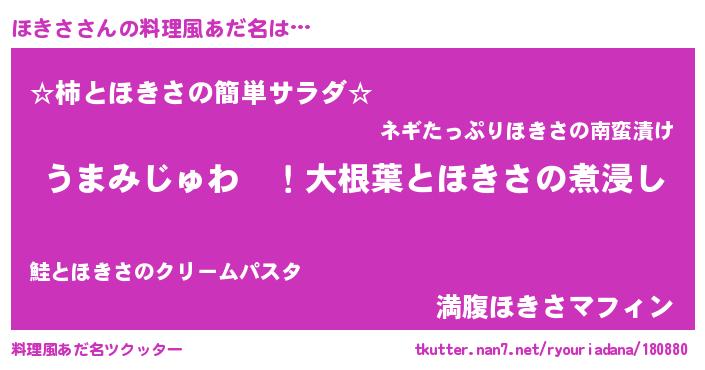 | ヘコむあだ名 | 『酢こんぶ』『ほきさ(笑)』 |
