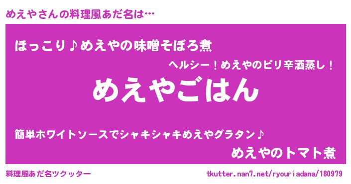 | ヘコむあだ名 | 『めえにゅー』『めえっぺ』 |