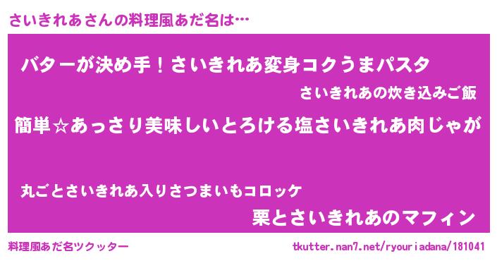 | 意味不明あだ名 | 『永久保存さいきれあ』 |