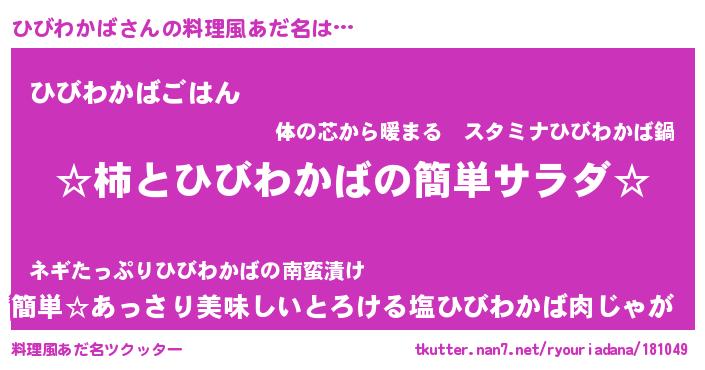 | 意味不明あだ名 | 『めかぶ科ひびわかば属』 |