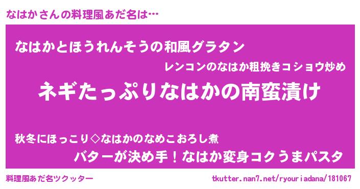 | ヒーロー風カッコイイあだ名 | 『スーパーナハカ』『慈愛の使者なはか』 |