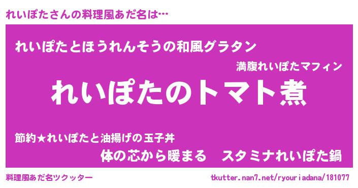 | 欧米人風あだ名 | 『ダニエルれいぽた』『マイケルれいぽた』 |