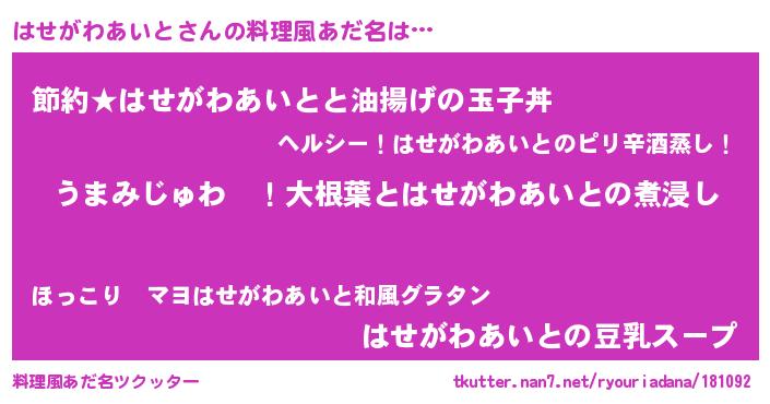| 胡散臭い通販商品みたいなあだ名 | 『運命の人と巡り会える高級そうな皿…その名も「はせがわあいと」』 |