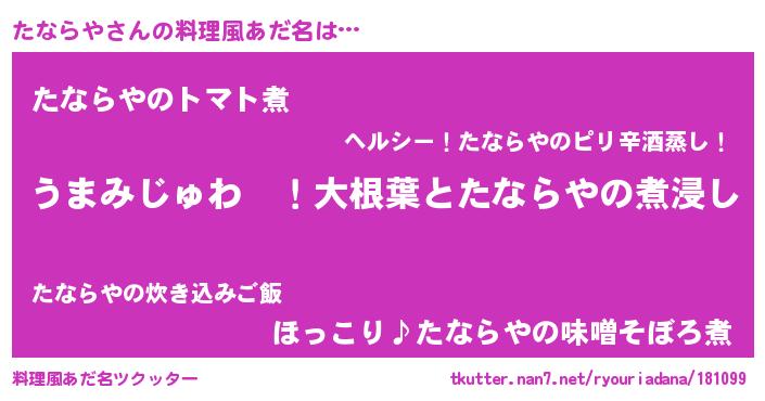 | 意味不明あだ名 | 『たならやフォーエバー』『自称たならや』 |