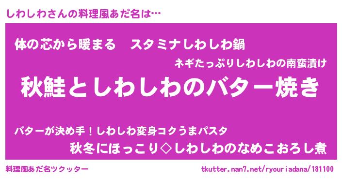 | 胡散臭い通販商品みたいなあだ名 | 『来世でも幸せになれる水素水…その名も「しわしわ」』 |