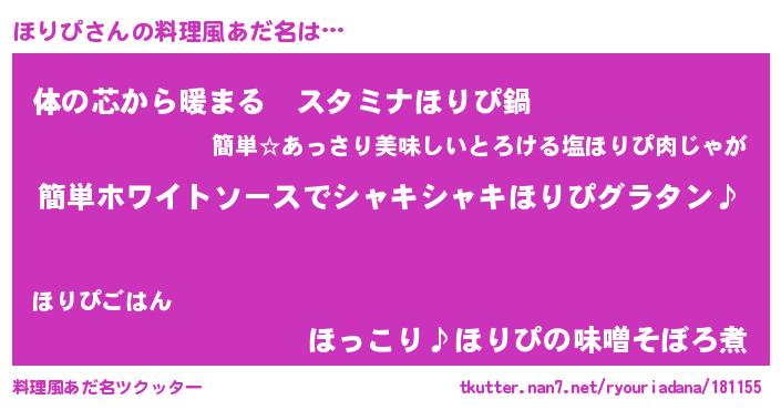 | ヘコむあだ名 | 『ほりっぺ』『なまこ酢』 |