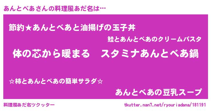 | 男性向けラノベタイトル風あだ名 | 『やはりあんとべあの青春ラブコメはまちがっている 』 |