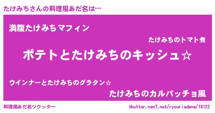 | ピコ太郎風あだ名 | 『タケ六郎』『ピコタ郎』『タタ太郎』 |