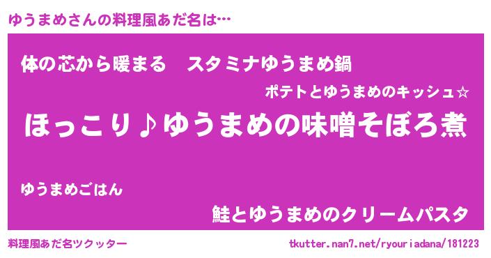 | ポケモン風あだ名 | 『ユウチュウ』『ユウマダネ』 |
