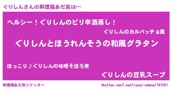 | ヘコむあだ名 | 『ぐりぷりん』『ぐりふぇ~』 |