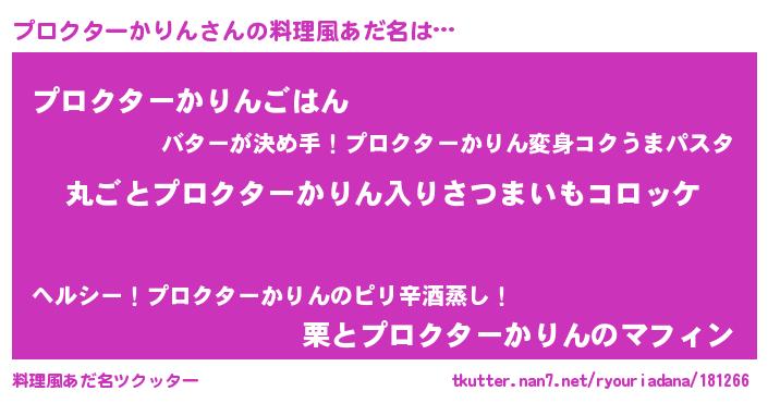 | 男性向けラノベタイトル風あだ名 | 『この素晴らしい世界にプロクターかりんを!』 |
