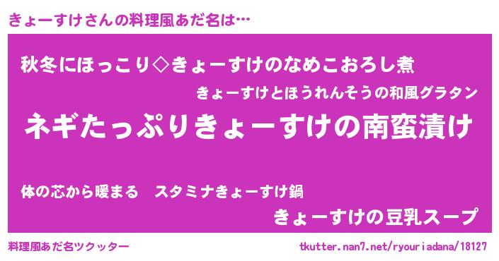| ヒーロー風カッコイイあだ名 | 『スーパーキョースケ』『幻影騎士キョ』 |
