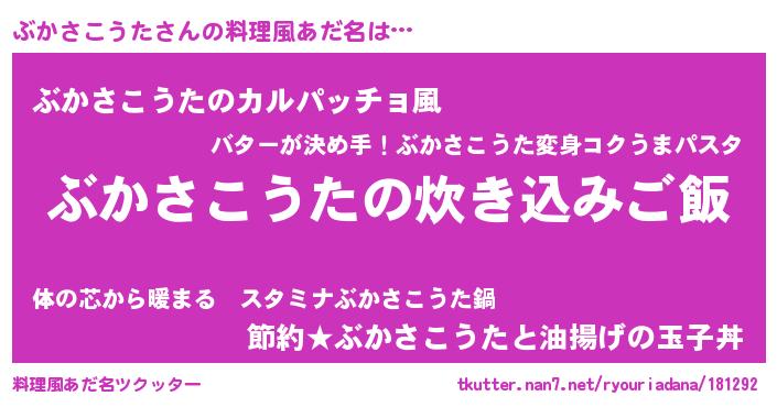 | 意味不明あだ名 | 『住所不定無職ぶかさこうた(12歳)』 |