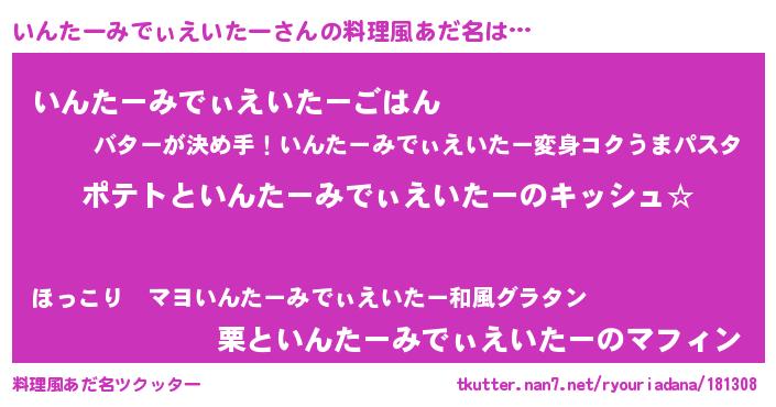 | 意味不明あだ名 | 『とにかく怪しいいんたーみでぃえいたー』 |