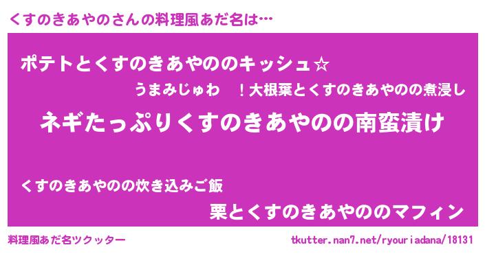 | 恥ずかしいあだ名 | 『プリティーくすのきあやの』『くすちん』 |