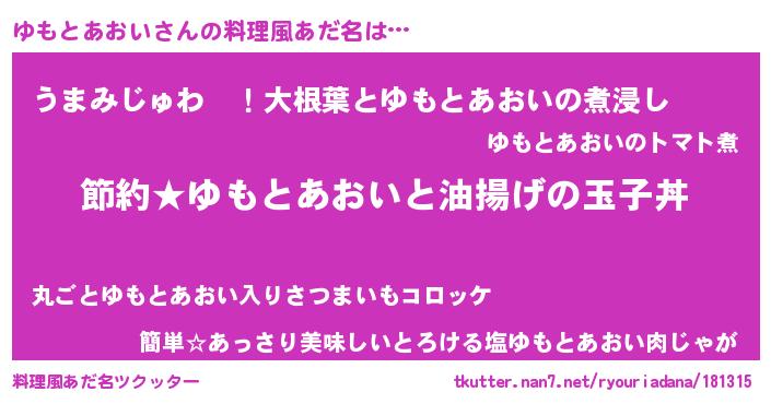 | ファンタジー風あだ名 | 『ユモフェル』『ユモディッシュ』 |