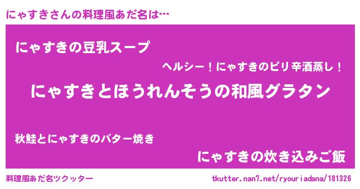 | 男性向けラノベタイトル風あだ名 | 『転生したらにゃすきだった件』 |