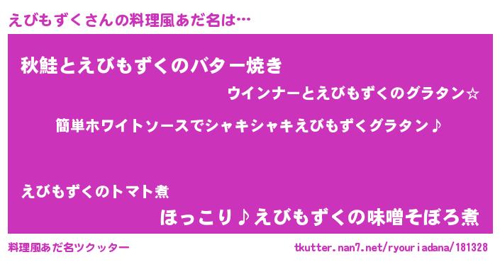 | 意味不明あだ名 | 『とにかく怪しいえびもずく』 |