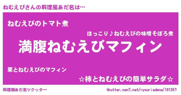 | 意味不明あだ名 | 『永久保存ねむえび』『ペロリンねむえび』 |