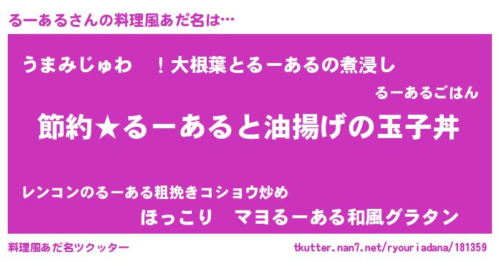 | 男性向けラノベタイトル風あだ名 | 『るーあるの憂鬱』『ルーアルスレイヤー』 |