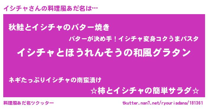 | 男性向けラノベタイトル風あだ名 | 『転生したらイシチャだった件』 |