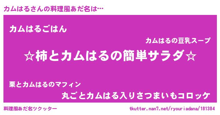| 男性向けラノベタイトル風あだ名 | 『緋弾のカムハル』『カムハルスレイヤー』 |