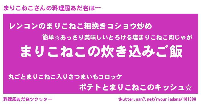 | 胡散臭い通販商品みたいなあだ名 | 『芸能人もオススメするアガリクス…その名も「まりこねこ」』 |