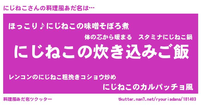 | 欧米人風あだ名 | 『にじねこ・ステッグマイヤー』 |
