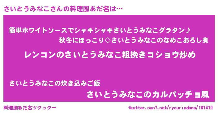 | ヘコむあだ名 | 『さいお』『さいとうみなこ(笑)』 |