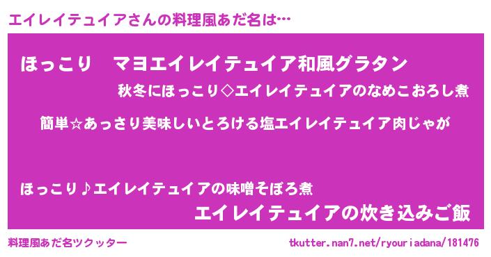 | 意味不明あだ名 | 『永久保存エイレイテュイア』 |