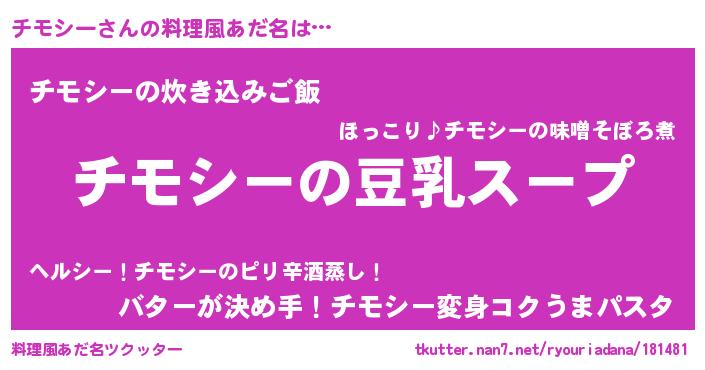 | 女子向けラノベタイトル風あだ名 | 『チモシーは平凡を望む』『闇のチモシー』 |
