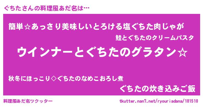 | 女子向けラノベタイトル風あだ名 | 『ぐちた伯爵の花嫁』『死神ぐちたの再婚』 |