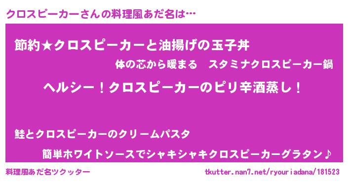 | 胡散臭い通販商品みたいなあだ名 | 『テレビで話題の高麗人参…その名も「クロスピーカー」』 |