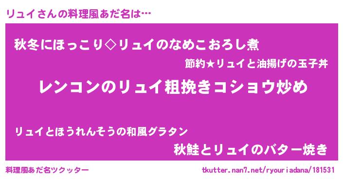 | ピコ太郎風あだ名 | 『ピコリ郎』『リコ十郎』『リュ史郎』 |