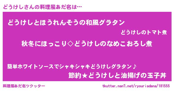 | 男性向けラノベタイトル風あだ名 | 『どうけしに滅ぼされるだけの簡単なお仕事です』 |