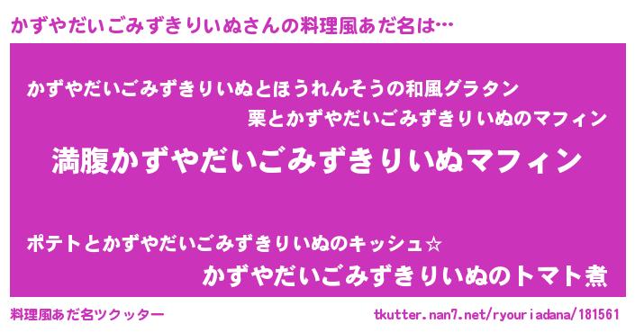 | 可愛いあだ名 | 『かずやだいごみずきりいぬママ』 |