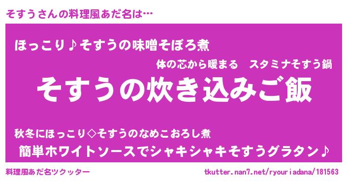 | ピコ太郎風あだ名 | 『ソコ三郎』『ソス太郎』『ピソ太郎』 |