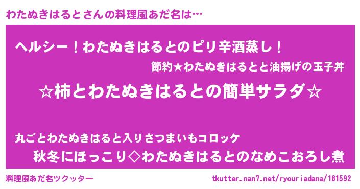| 胡散臭い通販商品みたいなあだ名 | 『テレビで話題の高麗人参…その名も「わたぬきはると」』 |