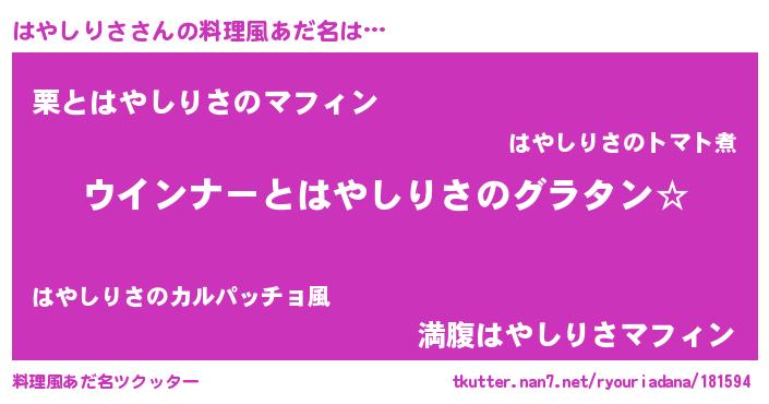 | ヘコむあだ名 | 『なまこ酢』『はやしりさ(笑)』 |