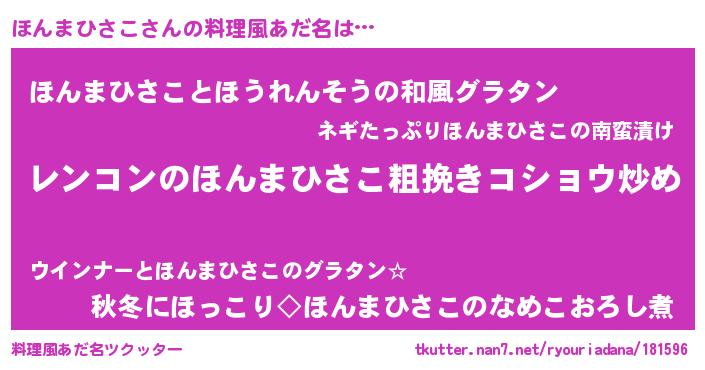 | 男性向けラノベタイトル風あだ名 | 『魔法科高校のほんまひさこ』 |