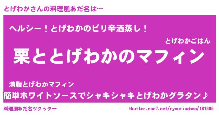 | ピコ太郎風あだ名 | 『トゲ次郎』『ピコト郎』『トト太郎』 |