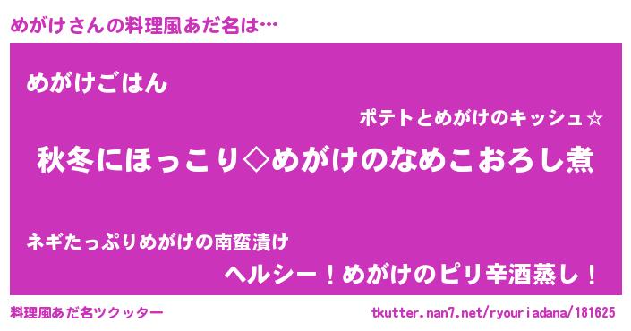 | 意味不明あだ名 | 『つくし科めがけ属』『自称めがけ』 |