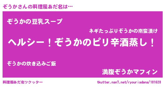 | 胡散臭い通販商品みたいなあだ名 | 『芸能人もオススメする高麗人参…その名も「ぞうか」』 |