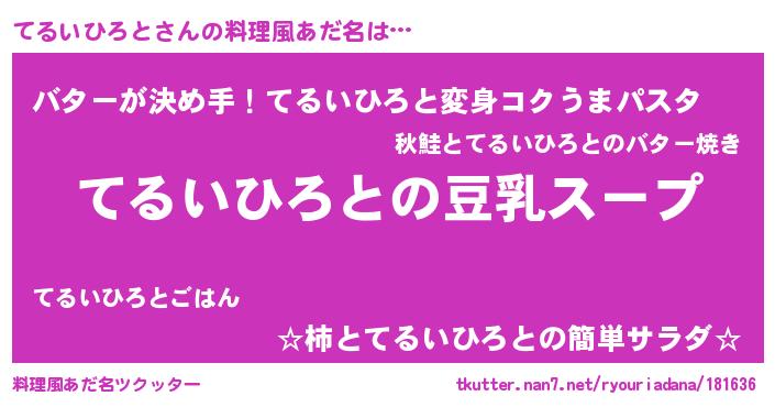 | ヘコむあだ名 | 『てる太郎』『てるいひろと(小並感)』 |
