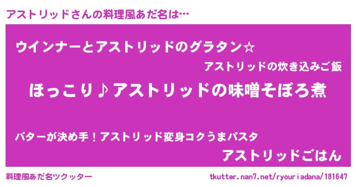 | ヒーロー風カッコイイあだ名 | 『スーパーアストリッド』『銀牙騎士アス』 |