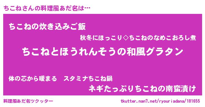 | 女子向けラノベタイトル風あだ名 | 『ちこねの玉の輿計画!』 |