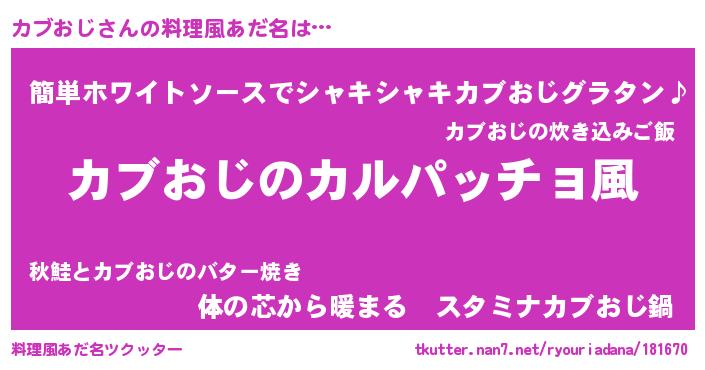 | 意味不明あだ名 | 『住所不定無職カブおじ(93歳)』 |