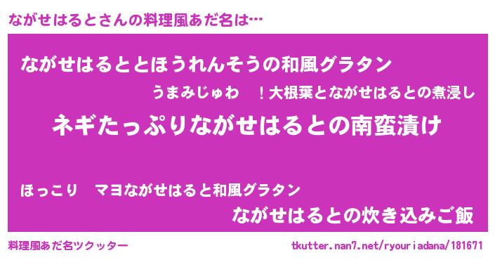 | 胡散臭い通販商品みたいなあだ名 | 『億万長者になれる水晶球…その名も「ながせはると」』 |