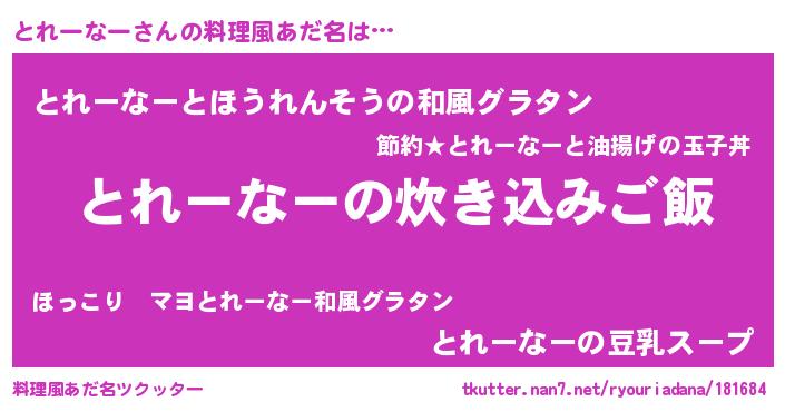 | 意味不明あだ名 | 『ニラ科とれーなー属』 |