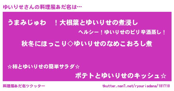 | ファンタジー風あだ名 | 『エターナルユイリセー』『ゼユイトゥ』 |